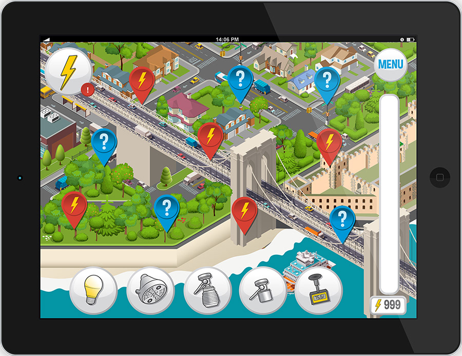 The Smart Energy Saver game app was developed as program add-on for the Con Edison Smart Kids Energy Efficiency Program. The game is used as a tool that helps increase energy efficiency knowledge, reinforce the in-class lessons students are learning, and promote the installation of the measures included in the program’s take-home kits. The goal of adding the game app to the program is to expand student learning connections through a digital medium where students have fun engaging with the content. The game motivates students to complete the program while casually reinforcing the lessons learned through the in-class and take-home portions of their efficiency education. The concept of a completely customizable, fun and engaging game app provides our clients with a unique way to pass on behavior-changing knowledge through multiple generations.